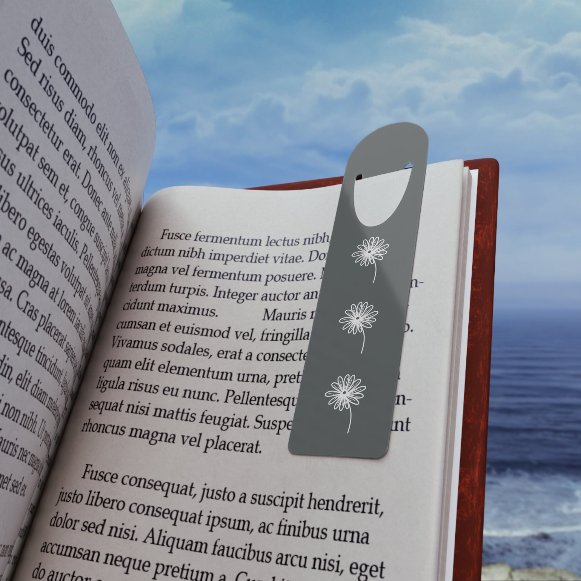 This one's for our bookworms out there - for anyone with an insatiable literary appetite. Made with robust aluminum, this dark grey bookmark featuring three daisies is perfect for adding a touch of nature to your reading experience. This lightweight aluminum bookmark with vibrant colors and rounded edges is an ideal gift for avid readers. Suitable for book lovers and nature enthusiasts, this bookmark is perfect for birthdays, Mother's Day, and any other special occasion.